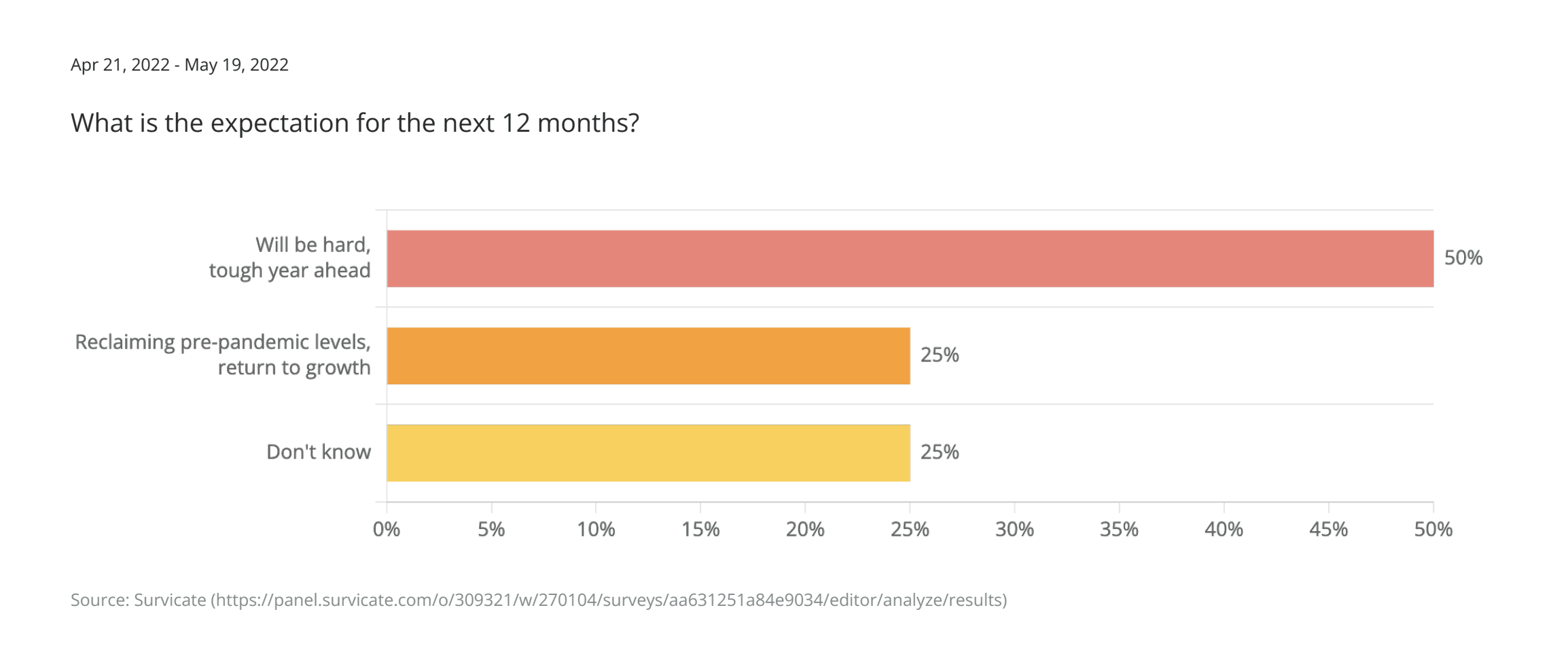 Interestingly, later on we asked what their expectations were for growth this year and 50% expected a hard year ahead, 25% stated they will return to pre-pandemic levels, and 25% were unsure.